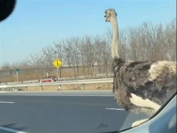 原标题:天津高速鸵鸟奔跑车辆纷纷避让 受到惊吓不停变道:不慎掉落 已被车主领回