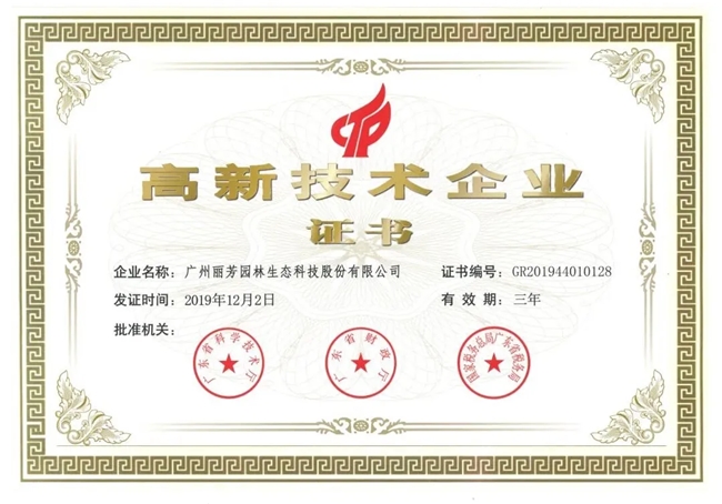自2019年首次获评国家高新技术企业以来,丽芳园林始终秉承“让园林与园艺滋养生命”的企业使命,坚持走科技创新驱动发展之路。