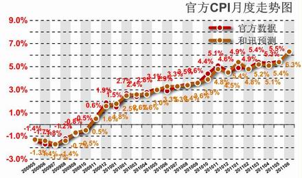 和讯机构预测:预计6月份CPI同比涨幅6.3%