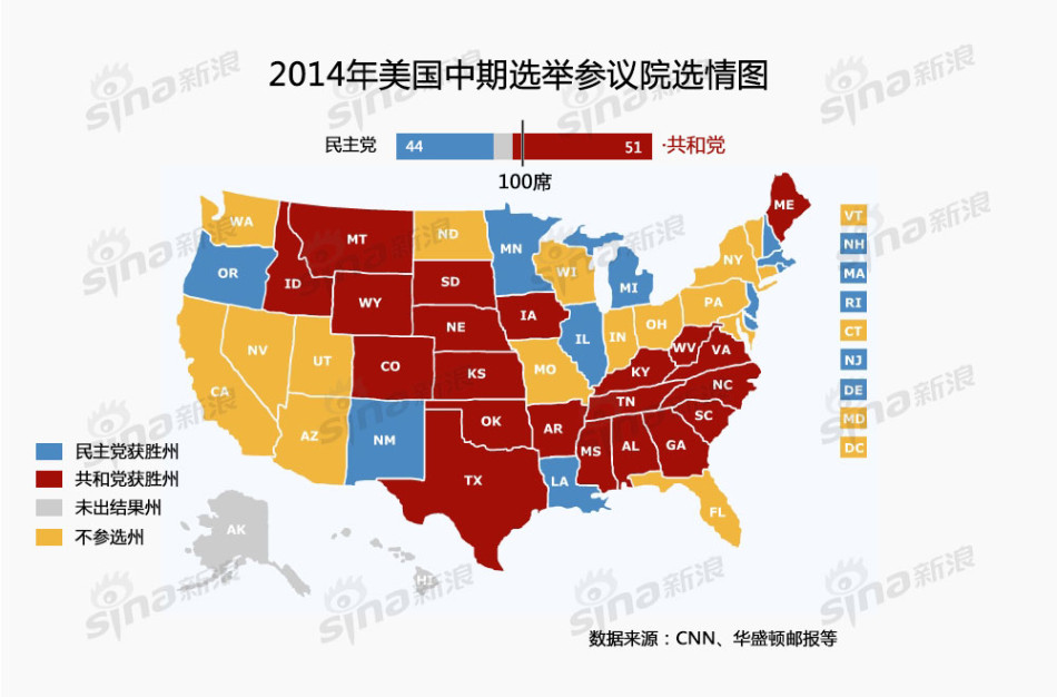 中新网11月5日电 据多家美国主流媒体预测,美国共和党在本届中期选举中,已经获得了控制参议院所需的过半席位,成功夺取参院控制权。 美国媒体预测显示,在参议院关键席位的竞选中,共和