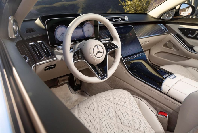 内饰方面将沿用全新S级的内饰造型,采用分体式大屏设计。其灵感来自于豪华游艇,目前在全新S级已经展示了超过多种风格的内饰材质和不同种颜色搭配,各种钢琴烤漆、开孔木饰和真皮包裹的运用使人眼前一亮,方向盘和出风口的造型也进行了重新的设计。相比现款车型营造的豪华氛围,全新的内饰更多了几分科技感和时尚感。