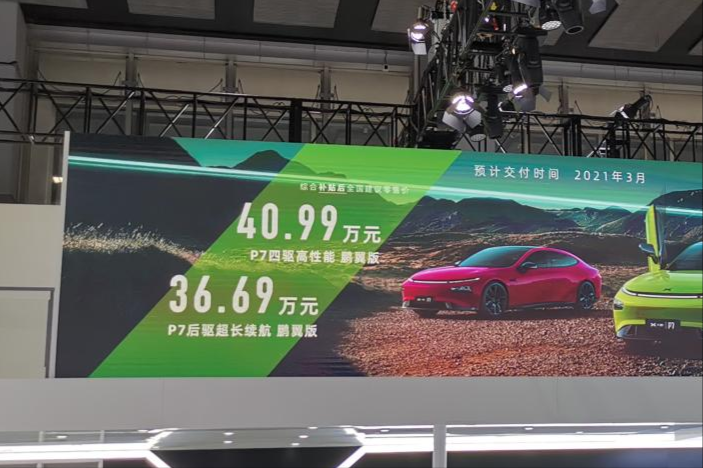 本次推出的鹏翼版共推出两款车型,分别为后驱超长续航版和四驱高性能版。两车的电池容量均为为80.87kWh,其中后驱超长续航版电动机最大功率196kW,峰值扭矩为390N·m;四驱高性能版车型则分别在前/后桥各搭载一台电机,总功率达到316kW,最大扭矩为660N·m,零百公里加速将小于4.3秒。