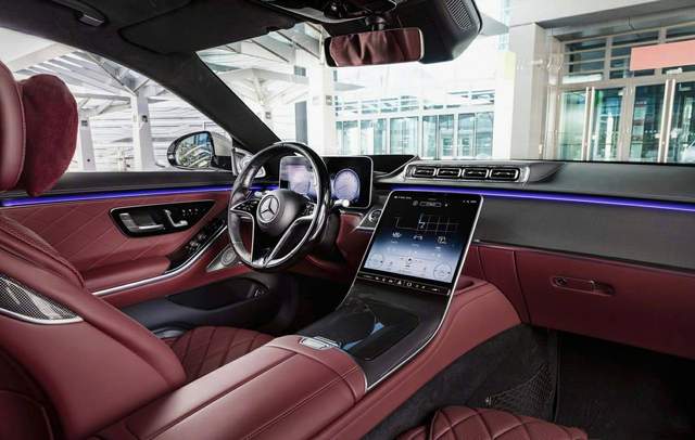 新车的内饰设计灵感来自于豪华游艇,目前已经展示了超过多种风格的内饰材质和不同种颜色搭配,各种钢琴烤漆、开孔木饰和真皮包裹的运用使人眼前一亮,方向盘和出风口的造型也进行了重新的设计。相比现款车型营造的豪华氛围,全新S级的内饰更多了几分科技感和时尚感。