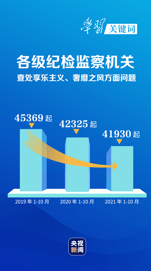 值得一提的是,今年前10个月,各级纪检监察机关查处享乐主义、奢靡之风方面问题共41930起,相比前两年同期的问题查处数量,呈下降趋势。