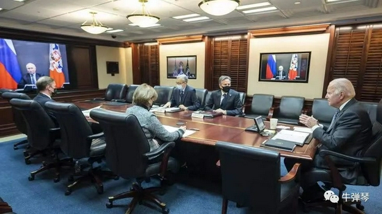 拜登和普京视频会晤,警告:俄罗斯如果发动进攻,将付出可怕的代价。很有意思的一点,拜登视频通话的地点,是白宫的战情室——美国最高层指挥战争的地方。