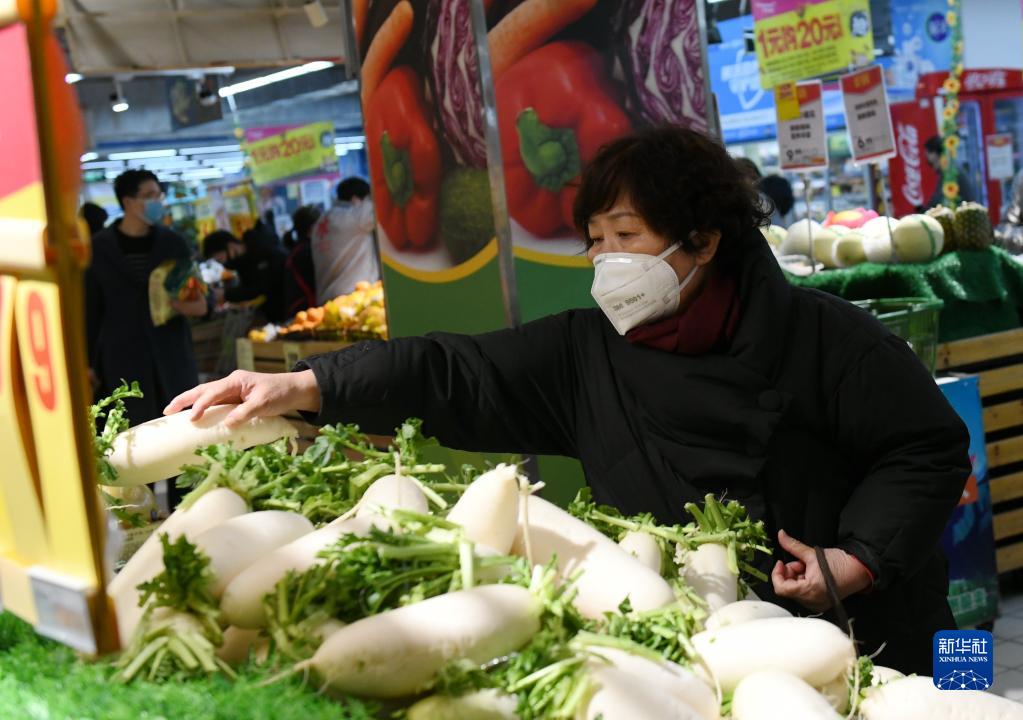 12月22日晚,市民在西安市解放路一家超市内挑选蔬菜。新华社记者 李一博 摄