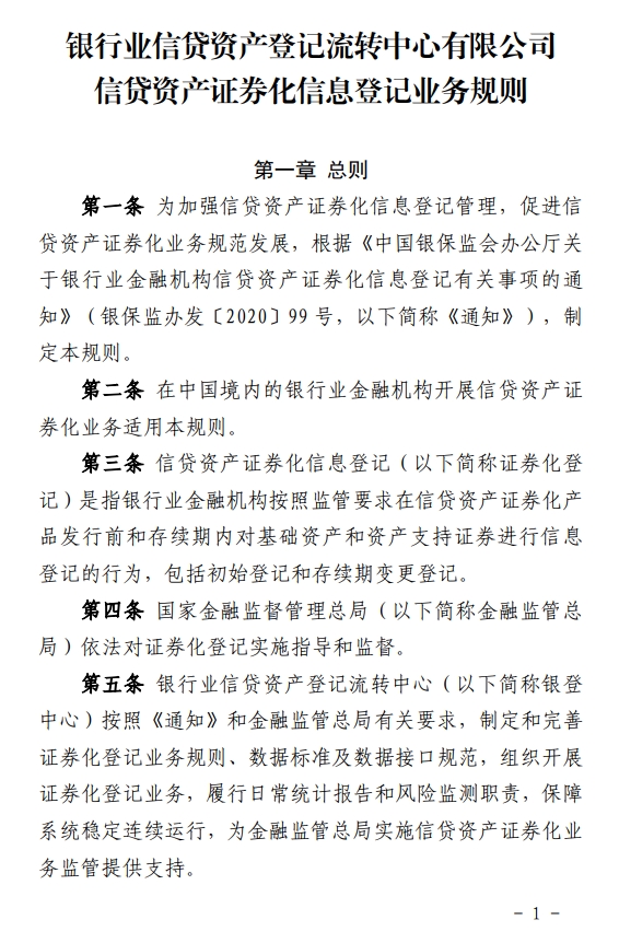【大河财立方消息】6月3日消息,银行业信贷资产登记流转中心有限公司日前修订发布信贷资产证券化信息登记业务规则。