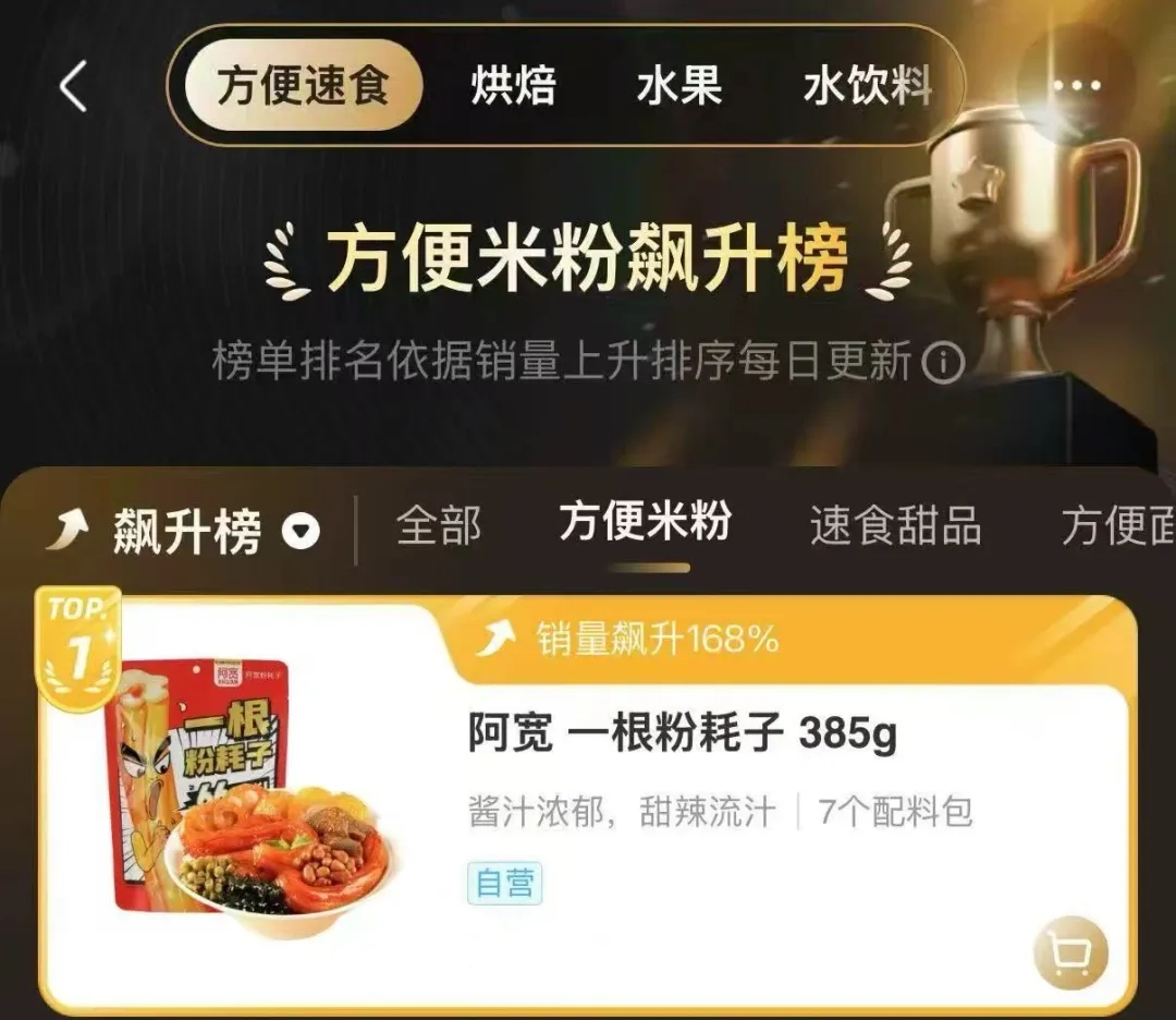 一根粉耗子荣登抖音辣味速食粉类爆款榜、趋势榜双榜榜首