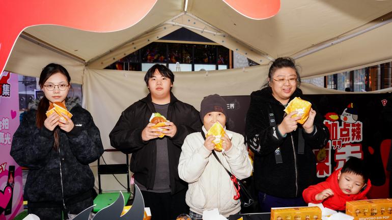 快闪市集营业的两天中,现场始终人气爆棚。主题摊位前,牛约堡130g厚牛肉饼的焦香与三养火鸡辣香交织弥漫,远远就能勾起食欲。超吸睛的热辣挑战赛更是点燃全场热情——不少食客勇敢挑战火鸡辣酱堡的鲜辣极限,直呼“过瘾”,成功完成挑战的选手还收获了品牌限定周边,引得围观人群阵阵喝彩。