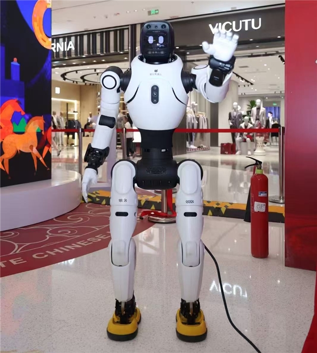 在庙会现场,传统年俗焕发新的光彩。加速进化机器人披上红装,摇头摆尾,上演精彩绝伦的机器人“赛博舞狮”表演。星动纪元 Q5 机器人化身兔儿爷用多语言送上新春祝福,跟你唠老北京年俗。智元远征A2机器人化身财神爷,身着红金祥纹服饰迎宾送福,走到哪就把年味儿与福气送到哪。只需唤上一声“财神爷”,随口问上一句新春期许、年俗趣闻,它都能一一作答,让逛庙会的欢喜与迎新春的福运撞个满怀。