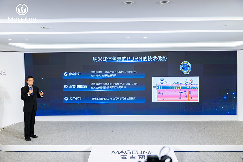 发布会上,麦吉丽首席研发官杨帆博士首次揭秘小银管第二代的核心技术——“3核PDRN科技”。这项技术从皮肤结构本身出发,整合三种不同作用靶点的PDRN,通过专研双透皮技术实现层层精准修护。