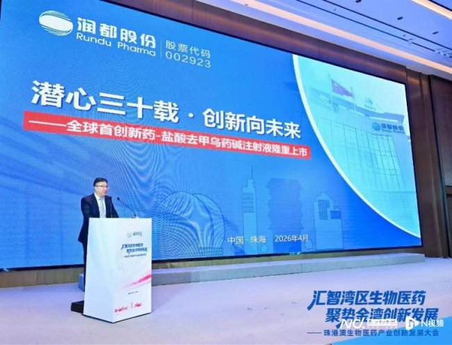 4月24日,珠港澳生物医药产业创新发展大会在珠海金湾火热启幕。会上,珠海润都制药股份有限公司(简称“润都股份(002923)”,002923.SZ)宣布,公司研发的全球首创、国家1类创新药——盐酸去甲乌药碱注射液(以下简称“去甲乌药碱”)获得国家药品监督管理局批准上市。该药是国家“重大新药创制”专项核心成果,也是广东省屈指可数的化药1类新药,更是珠海市近十年来首个化药类国家1类创新药,不仅填补临床用药空白,也彰显出珠海生物医药产业的硬核创新实力。