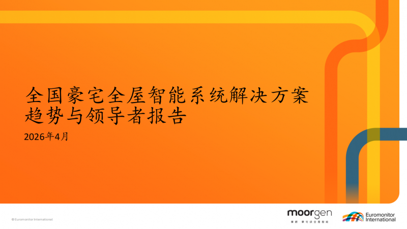 4月23日,摩根moorgen联合国际权威调研机构欧睿国际(Euromonitor International)正式发布《全国豪宅全屋智能系统解决方案趋势与领导者报告》。报告通过详实数据揭示了几大关键趋势:在房地产市场整体进入调整期的背景下,高端住宅成交量逆势提升,高净值人群对住房的核心需求正从物理空间向"情绪资产"跃迁;全国豪宅全屋智能系统解决方案市场已达百亿级规模,未来三年复合增长率预期保持在15%至20%之间;随着部分外资品牌受多重因素影响加速退出中国市场,国产高端品牌正迎来明确的市场窗口期。