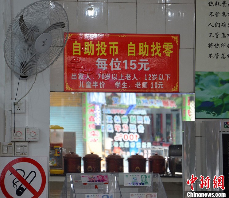 组图:广东一大学生开自助投币餐厅 付款靠自觉