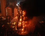 组图:广州闹市一栋烂尾楼连烧5小时 楼内有人求救