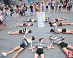 组图:成都街头美女集体倒地“吐槽”引围观 争取权利