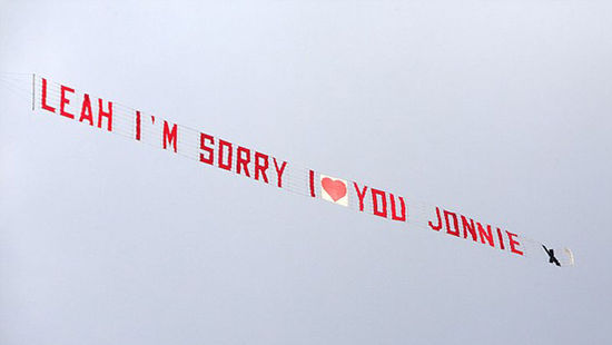 组图:英国男子雇飞机打条幅向女友道歉 花费650英镑